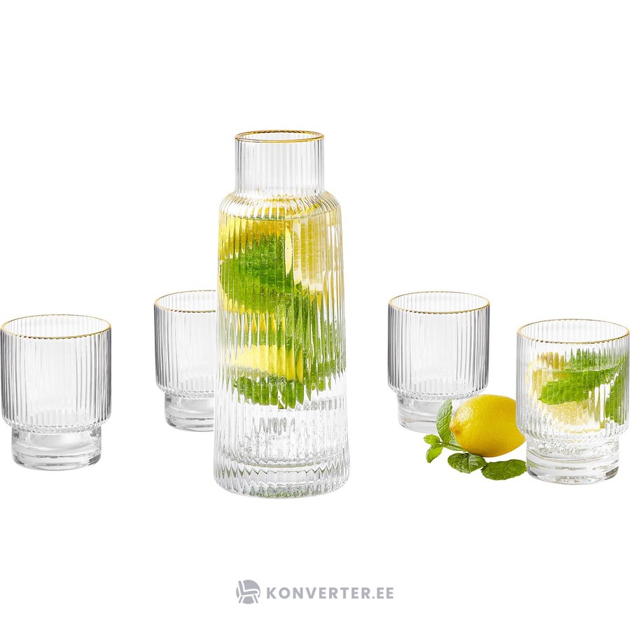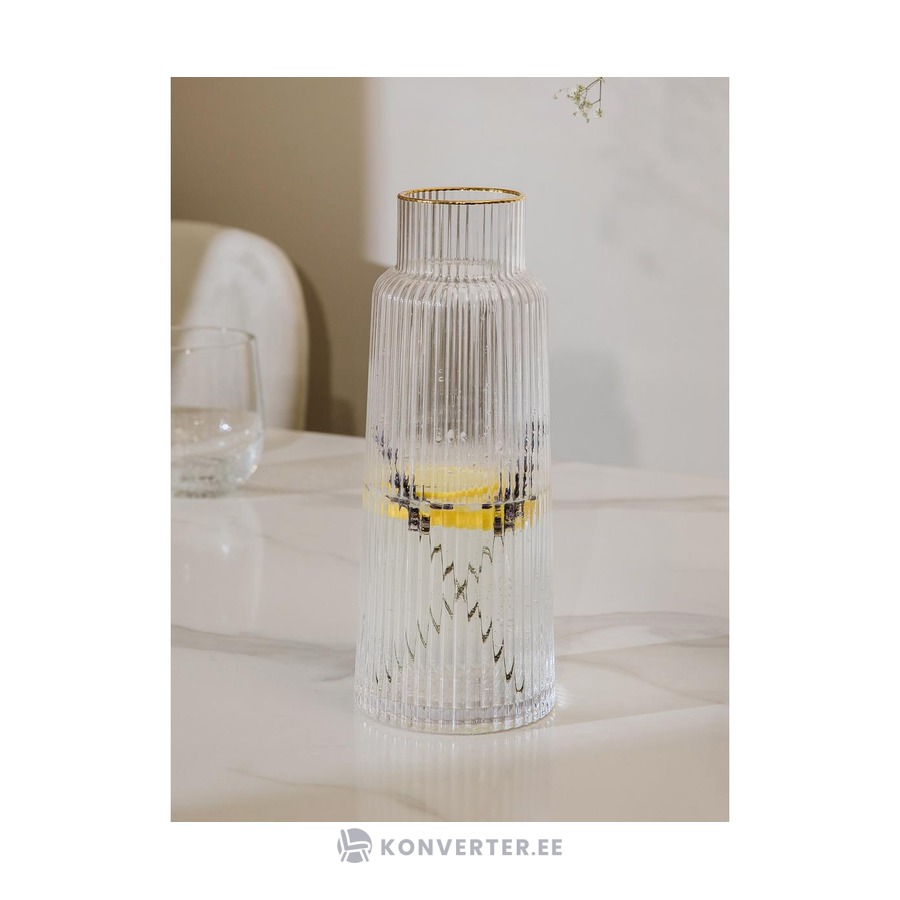 Lasinen vesikannu kultaisella reunalla (minna) ehjä